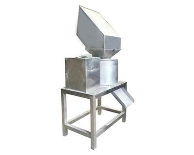 工作原理:飛刀繞自身軸線在固定不動的底刀間隙內(nèi)旋轉(zhuǎn),從而使果蔬破碎,轉(zhuǎn)子上有四組飛刀,底刀為一組,視果蔬種類不同,出料斗有斗式和管式兩種型式。在進(jìn)料斗上部加上緩沖裝置,可得到粒度更細(xì)的物料。
