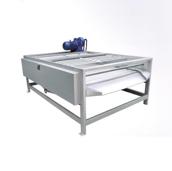 果蔬原料在旋轉(zhuǎn)的毛刷輥作用下作不規(guī)則旋轉(zhuǎn),邊噴淋邊刷洗。