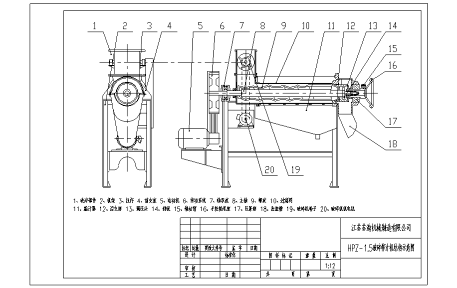 由前支座、進(jìn)料斗、螺旋、過(guò)濾網(wǎng)、盛汁器、后支座、出渣槽等零件組成,螺旋主軸左端支承于滾動(dòng)軸承座內(nèi),右端支承于手輪軸承座中,電動(dòng)機(jī)通過(guò)一對(duì)三角皮帶輪驅(qū)動(dòng)螺旋進(jìn)行工作。